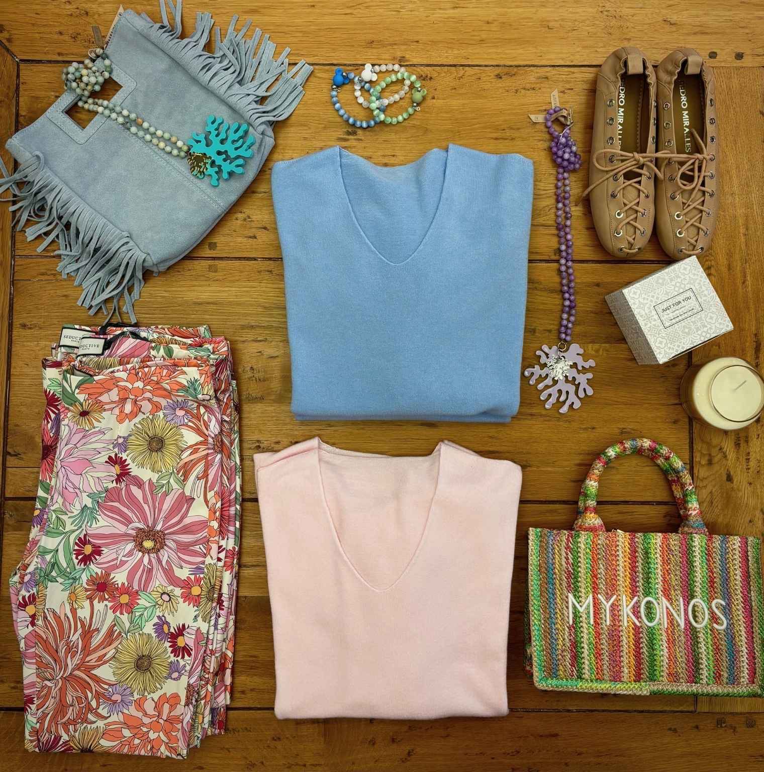 Unser kleines aber feines Sortiment an Accessoires umfasst Schuhe und Taschen die unser Modesortiment abrunden, witziger Statement-Schmuck aber auch einfach kleine Mitbringsel.